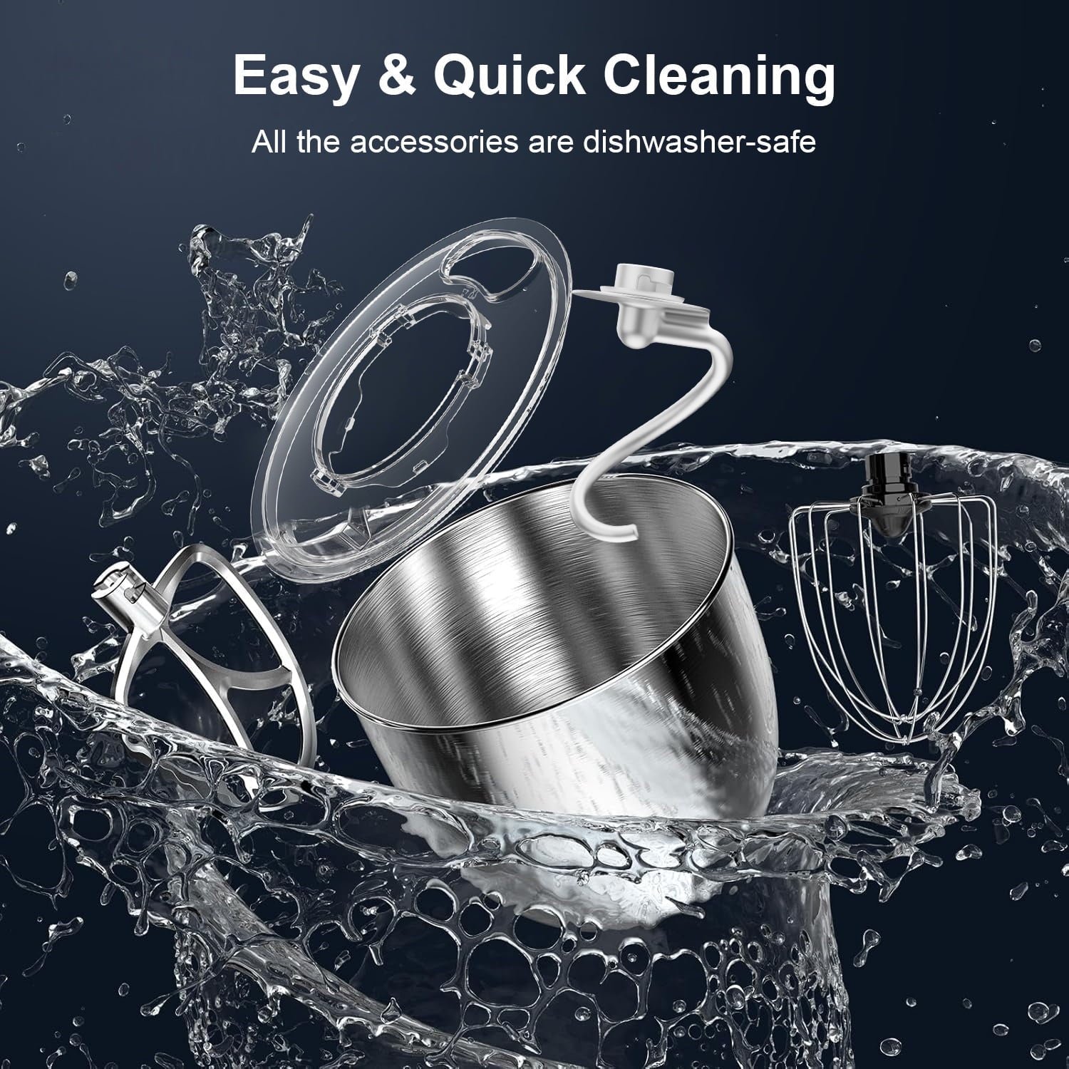 5.5QT Stainless Steel Bowl – Large enough for family-sized batches, yet compact for small kitchens.