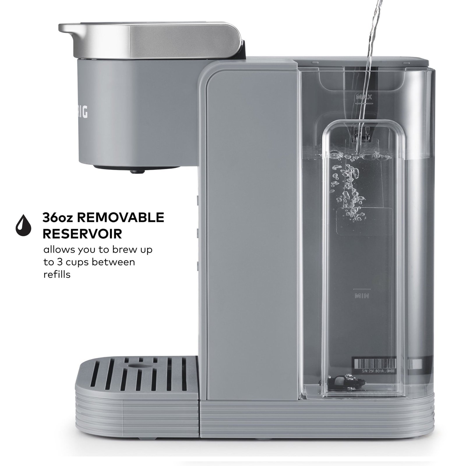 Introducing the Keurig K-Express Essentials Plus Single Serve Coffee Maker: Enjoy refreshingly delicious iced coffee and full-flavored hot coffee from one multitalented coffee maker. Brew the perfect coffee for any craving, mood, or mouthwatering moment. Always easy, always right. It’s all in the blue Brew Over Ice button. One push, and the Keurig K-Express Essentials Plus coffee maker automatically adjusts the brew temperature, starting hotter to extract full flavor, then cooling down to minimize ice melt. All for a vibrant, balanced iced coffee that never tastes watered down. Brew a 12oz cup for your favorite iced coffee or choose from 3 cup sizes for hot coffee — 6, 8, or 10oz. Whether brewing hot or iced, the 36oz removable reservoir lets you enjoy multiple deliciously refreshing cups between refills. Exclusively at Walmart.