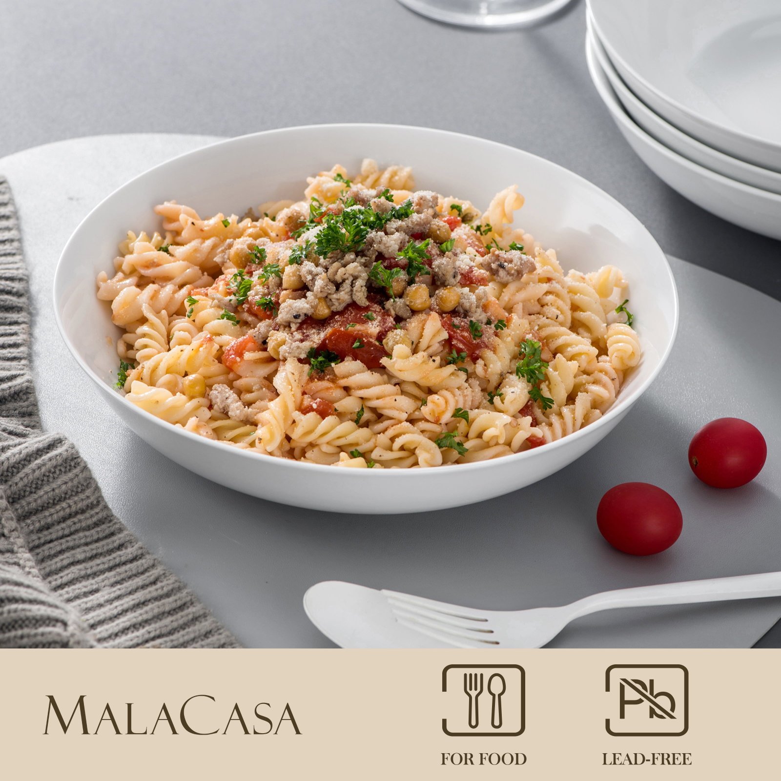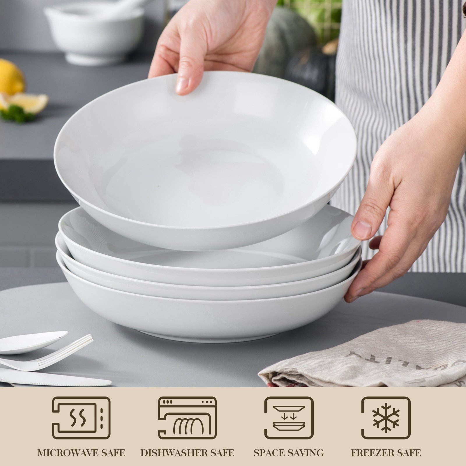 vancasso 4 piece Pasta Bowl Set, each with a generous 40oz capacity, designed to elevate your dining experience. Crafted for convenience and style, these bowls are perfect for serving up hearty portions of pasta, fresh salads, or steaming soups. Whether you’re hosting a family dinner or enjoying a quiet meal at home, this set is an indispensable addition to your kitchen. Moreover, its elegant design and thoughtful packaging make it an exceptional gift choice for housewarmings, weddings, or any celebratory occasion, promising to bring joy and utility to any home.